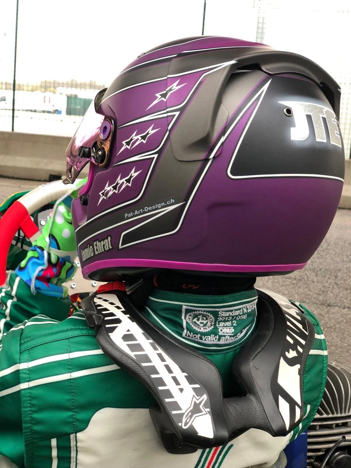 Bis dato war mein Bell Helm weiss. Dank dem Helm-Sponsoring Planeo Schweiz konnten wir ein Helm Design erstellen. Das Helm Design wurde von Pat Art Design gemacht. In enger Zusammenarbeit habe ich auf der Basis des Hamilton Design meine eigene Note eingebracht. Ich freue mich sehr, den neuen Helm zu zeigen und zu tragen.